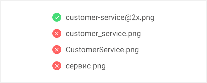 - Use @2x or @3x postfix to prepare images for devices with different pixel densities.