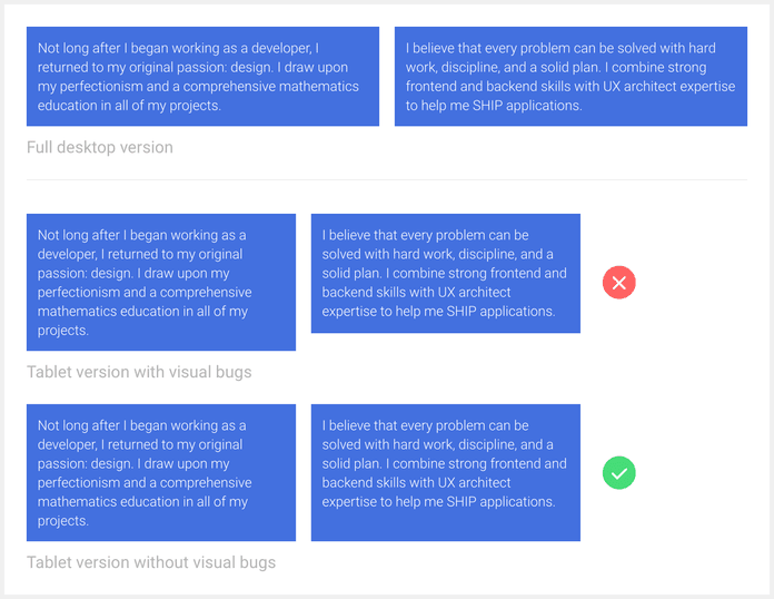 Another typical mistake designers make is forgetting about height and only showing the behavior of elements based on width changes of the container. Sometimes, you have elements with relative height, too, and you will need to explain the behavior of those objects to the developer . You must establish the minimum height or maximum height, and the position of the elements inside that element.