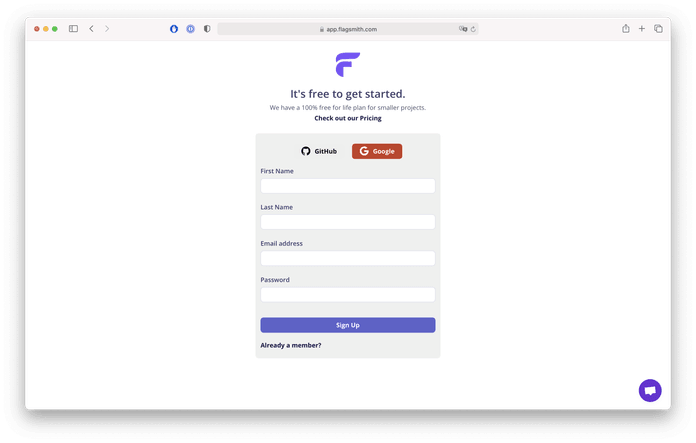 The configuration process is simple. Once you've signed up, create a new project. In Flagsmith you can define multiple environments per project, each environment keeps its own features/users/segments and API key.